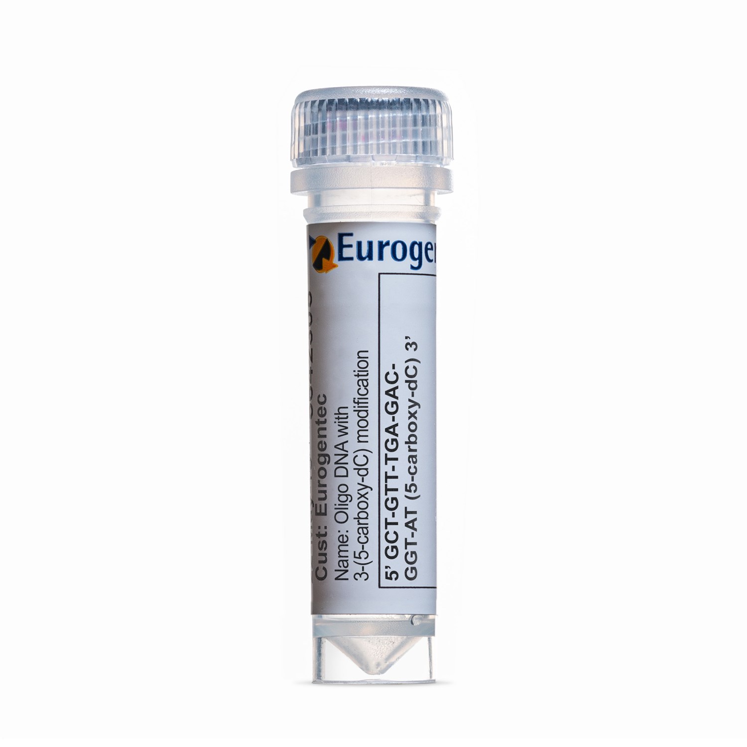 Modified 2’-deoxycytosine is available as a 5', internal or 3’ modification to modify oligonucleotide cytosine residues with a carboxyl group. This modification has a great interest in epigenetic studies and gene expression research.