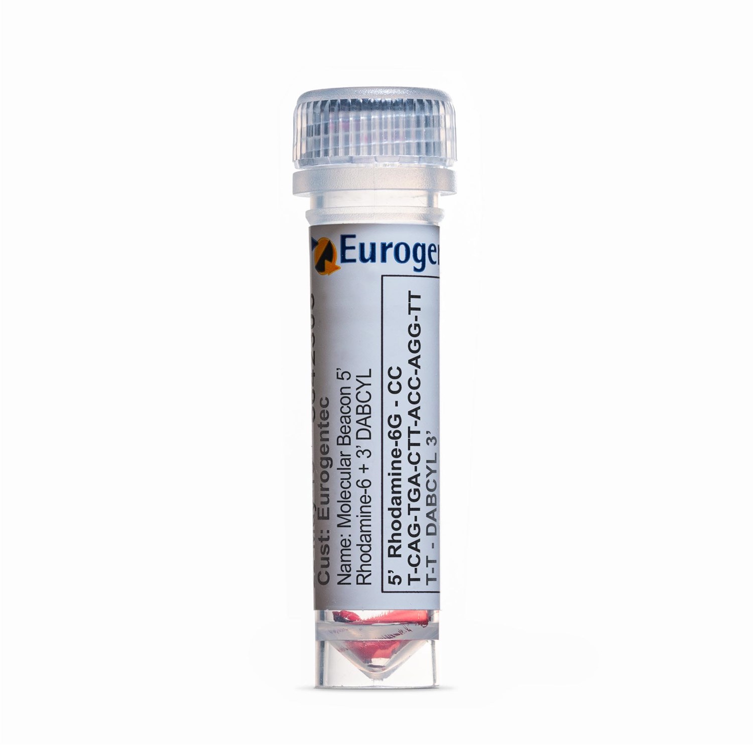 Eurogentec is a licensed supplier of Molecular Beacons, and offers a large number of fluorescent reporters and quenchers. All Molecular Beacons are provided double-HPLC purified and controlled by analytical HPLC and MALDI-TOF MS. The maximum length of standard Molecular Beacons is 45 bases. Molecular Beacons are provided lyophilized in individual tubes.