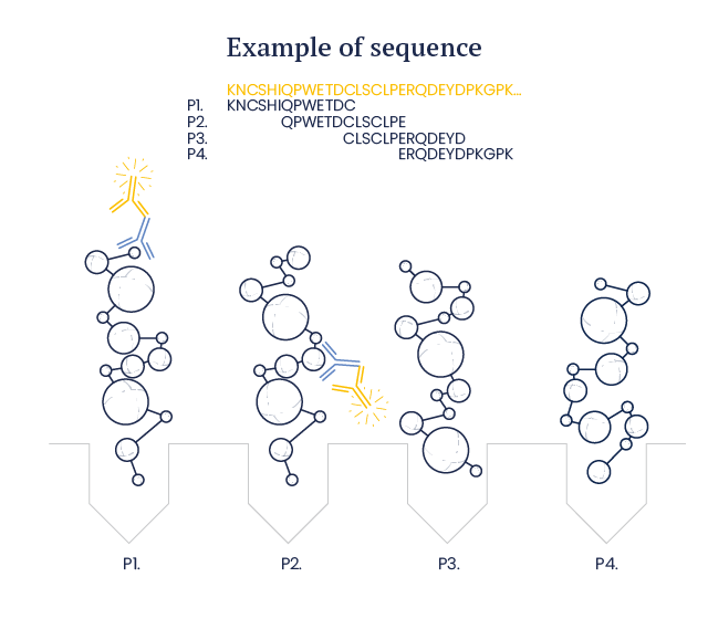 To determine the protein epitope specifically recognized by a monoclonal antibody (mAb), Eurogentec can design and synthesize a peptide library spanning the whole protein sequence, and screen this library in a 96-well format to map the protein region which harbors the mAb epitope.