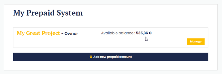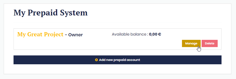 Select the desired prepaid account and click on “Manage”.