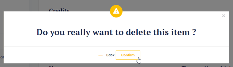 A pop-up window will open and asks if you really want to delete this item, click on the “Confirm” button to approve your request.