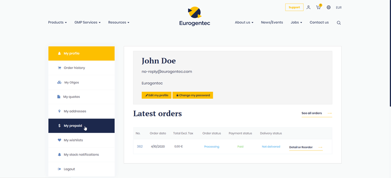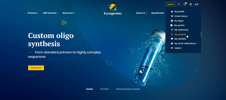 Eurogentec allow you to easily create a prepaid account from your account to better manage your budget and pay your orders faster.