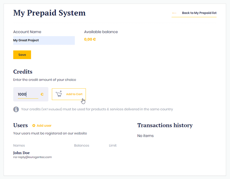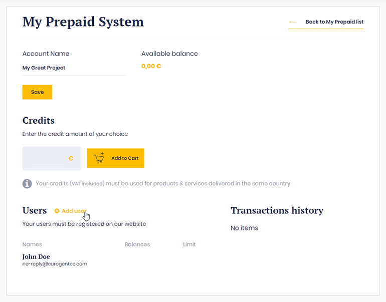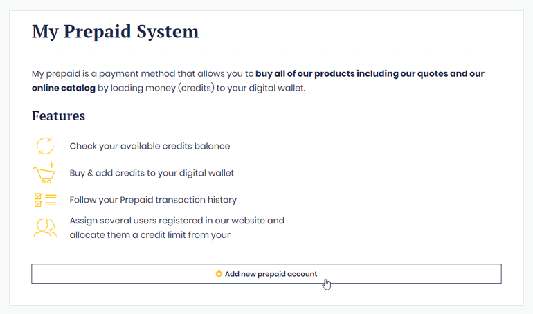 Click on the button “Add new prepaid account”.