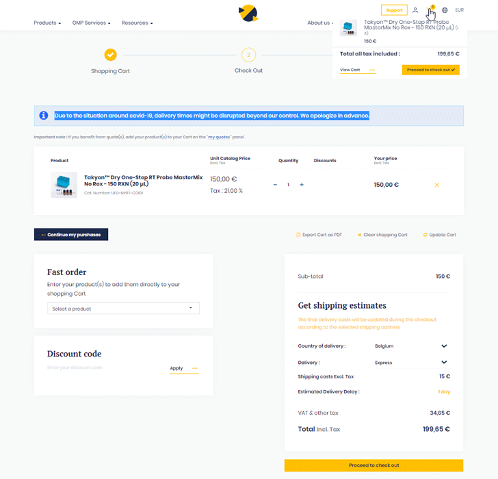 Once you have placed your order and want to proceed to check out, you have to fill in the information related to the delivery to estimate the times and costs.