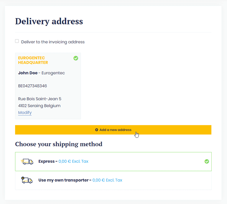 Click on the button “Add a new address” and complete your new address details in the pop-up window.