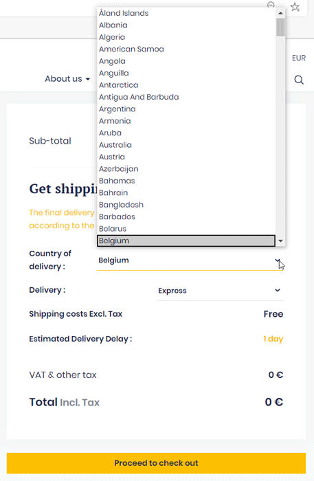 Choose your “Country of delivery” in the scrolling menu.