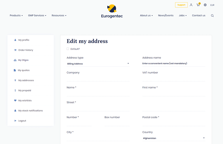 Tick the box “default” if you want to preselect this address for your future order.